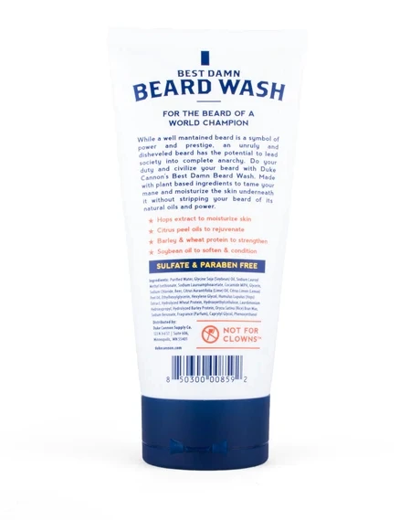 Duke Cannon’s Best Damn Beard Wash is made with plant-based ingredients to tame your mane and moisturize the skin underneath it without stripping your beard of its natural oils and power.