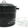 Enjoy your favorite fruits and vegetables throughout the year. This canner includes a 33 qt. canner with lid and jar rack. This durable porcelain on steel pot heats quickly and efficiently; saving energy. The versatile jar rack holds: 9 β quart jars, 9 β pint jars or 13 β half pint jars and is dishwasher safe.