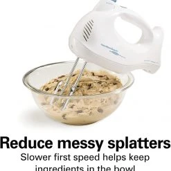 The Hamilton Beach® 6 Speed Hand Mixer with Snap-On Case comes with everything you need to start mixing: 2 dishwasher safe traditional beaters and a whisk. For easy storage, the snap-on storage case neatly holds the attachments to reduce the chance beaters are lost or misplaced. They’ll always be on hand when you need them. This versatile hand mixer has 6 speed options for a wide range of mixing tasks, plus QuickBurstâ„¢ for when you need an extra burst of power. The hand mixer has 275 watts of peak mixing power to get the job done whether you’re making a batch of homemade cookies, preparing mashed potatoes, or whipping cream to top a homemade pie. With this hand mixer, you’ll easily mix and whip ingredients for your favorite recipes. A slower first speed helps keep ingredients in the bowl when mixing and is perfect for folding in dry ingredients like flour into cake batter or for combining liquids. The Bowl Restâ„¢ feature conveniently stabilizes the mixer on the edge of the bowl when not in use to free your hands. The mixer has a nonskid heel that reduces tipping. From America’s #1 hand mixer brand.* Rated 4.5 stars by consumers.