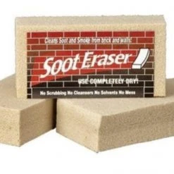The Soot Eraser works like an eraser, absorbing smoke residue, soot, fly-ash and dirt. Use it completely dry. No scrubbing, no mess, no solvents, no cleanser. Made from a non-toxic 100% natural Vulcanized rubber, the Soot Eraser works on most surfaces including: brick, mantels, fireplace hearths, woodwork, window blinds, window shades, painted walls and most wallpaper.