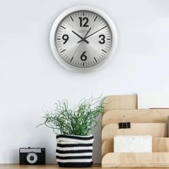 Give your living spaces an international jet set feel with La Crosse Clock Company’s Jett Wall Clock. A handsome 11.5″ plastic case frames a modern spun metal dial & domed glass lens. Silent Sweep quartz movement quietly flies metal hands around the dial with precision.