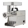 This hand grinder is a #32 and bolts down. The hopper has a 4 3/8″ x 5 1/4″ opening. Grinder comes with 3/8″ and 3/16″ plates and a knife. It is made from cast aluminum and well made for long lasting service.