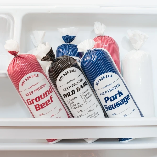 Pack your wild game meat the easy way. Quality opaque, polyethylene bags have a 1 1β2″ bottom gusset for added burst protection. The heavy 2 mil thickness guards against freezer burn. When filled and frozen, they stack neatly in the freezer. “NOT FOR SALE” printed on all bags