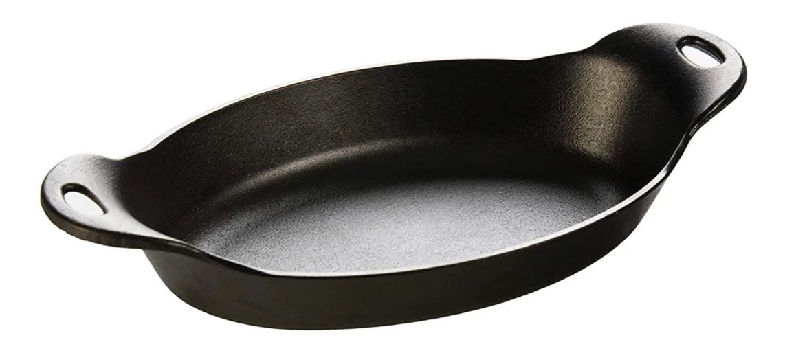 From fine dining to home cooking, the Lodge Cast Iron Oval Serving Dish adds authenticity to any table. This 36-ounce serving dish is perfect for shareable sides or even a baked pasta entrée. Ideal for hot or cold presentations. Cast iron has superior heat retention and durability, plus is seasoned with oil for a natural, easy-release finish that improves with use. Easy care: hand wash, dry, rub with cooking oil.