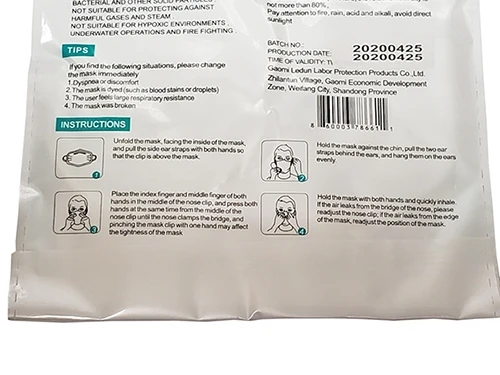 Warning: this mask is not intended as a replacement for gas masks and medical masks. Not suitable for toxic environments. Not for use of breathing is impeded or unsteady, or during sleep. Masks are disposable and cannot be washed or reused.