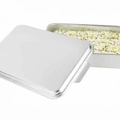 The NESCO Aluminum Cake Pan is perfect for those all-year-round special occasions like picnics, family gatherings and graduations. The classic, natural aluminum pan and cover ensures durability and portability that will last. The aluminum pan is the ideal size for cakes, brownies, and other delicious treats. The snap-on cover will keep foods fresh and doubles as a cookie sheet. NESCO Aluminum Cake Pans are a great gift idea for friends and family.
