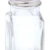 Stainless steel lid and glass body.