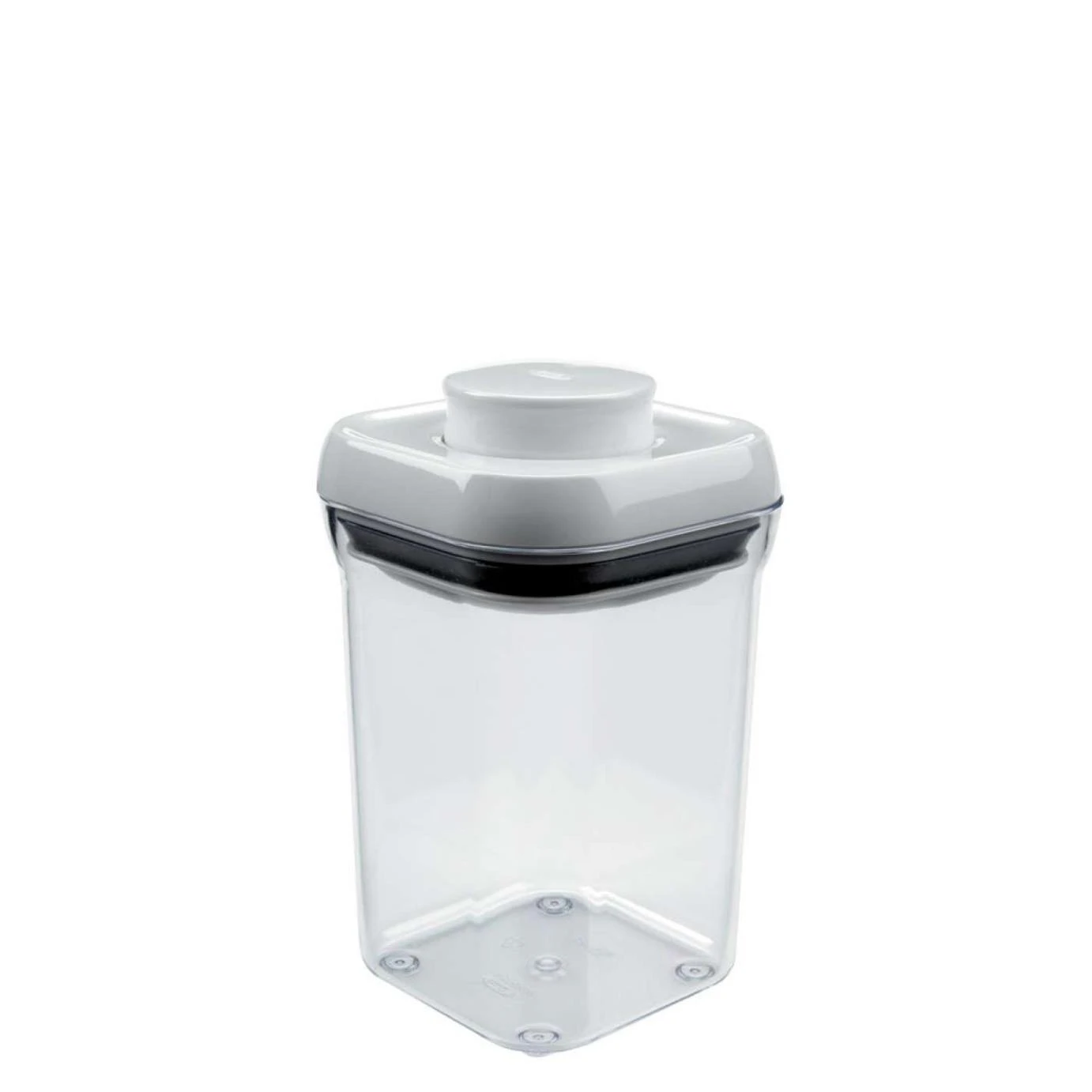 Stack-able and space-efficient, POP Containers are designed for modular use, so you can organize in any number of height combinations to fit your counter-top and pantry. Push-button mechanism creates an airtight seal with just one touch. Corners are shaped for pouring. Lids come apart for cleaning.