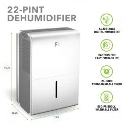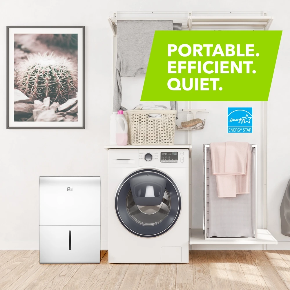 Dehumidifier featuring a stylish flat panel design that keeps the air dry, comfortable, and less welcoming to allergens. As efficient as it is effective, this powerhouse dehumidifier pulls excess moisture from the air in medium to large spaces up to 430 square feet. Control ideal humidity levels with smart features like the adjustable humidistat and comfort option, which self-regulates the humidity based on room temperature. Or, for continuous operation and no-emptying duty, opt for direct-to-drain installation. Includes auto-defrost function and bucket overflow protection. Energy Star rated.