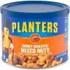 Planters Honey Roasted Peanuts answer the call of snack time with sweet, salty goodness. The whole peanuts are dry roasted with honey and seasoned with salt for an irresistible crunch. Every serving of the honey coated peanuts helps curb hunger with protein and unsaturated fats, tiding you over until mealtime while satisfying your cravings for something sweet. Plus, these honey peanuts are cholesterol-free and Kosher, so you can share with anyone else who is feeling peckish. Pack this 12 ounce can of peanuts in the car for your next trip, or stash one at work to be there for you during crunch time. Roasted and packed in the USA, these honey roast peanuts are packaged for freshness.