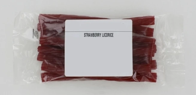 Strawberry-flavored licorice, 7 Oz. Not individually wrapped.