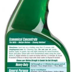 Simple Green All-Purpose Cleaner is a powerful cleaner and degreaser designed for effective and environmentally safer use on all washable surfaces. The biodegradable formula easily removes tough dirt and grime without chemicals that can harm people and the environment. The concentrated formula provides up to 30 times the cleaning value. Use it full-strength for heavy messes or easily dilute it with water for daily cleaning. Removes built-up dirt, grease, food spills, ink, pet stains and other tough grime indoors and out. For use on floors, carpets, walls, countertops, appliances, furniture, fabric, tools and more, this versatile all-purpose cleaner can easily replace a cupboard full of harsh cleaners, detergents, degreasers and laundry pre-soaks, making clean-up simple and safer. This formula is readily biodegradable per OECD 301D. It’s backed by our 100% money-back guarantee.