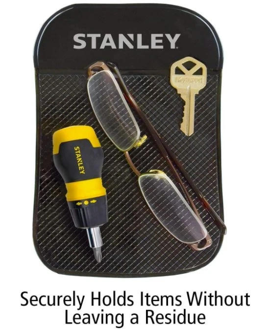 The Stanley dashboard pad is designed with powerful, anti-gravity gel with cutting-edge Nano-suction technology. Simply place on the dashboard of your car, RV, golf cart, boat, or office desk to keep your items in place.